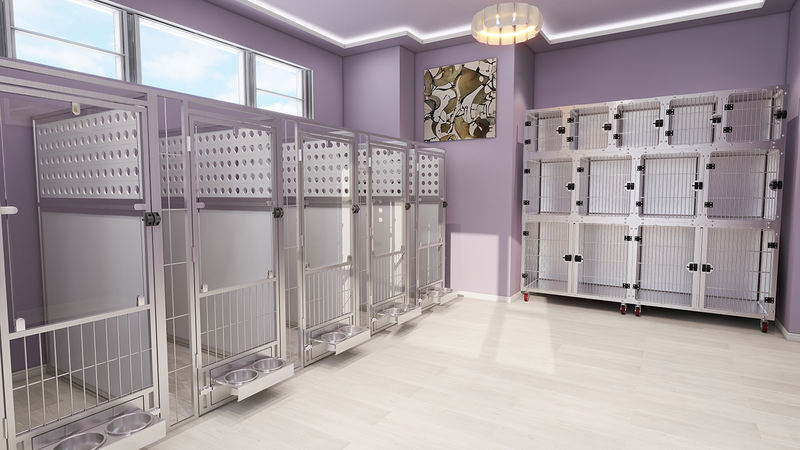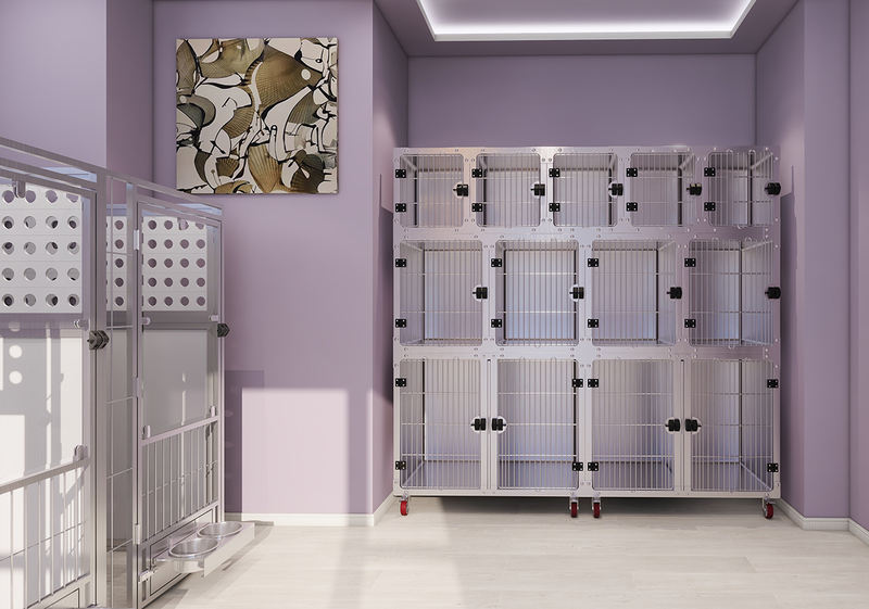 Mitmeotstarbeline Animal Boarding and Quarantine Cage kasutab tugevat, ohutult karastatud klaasi, et tagada erakordselt pikk kasutusiga, vältides samal ajal loomade kriimustamist. Täielikult keevitatud puuri korpusel on ümarad nurgad, mis hõlbustavad puhastamist ja hügieeni säilitamist. Puuriüksused saab paigutada otse olemasolevate akende ette, mistõttu need sobivad eriti hästi kutsikate müügi- ja adopteerimisaladele.
